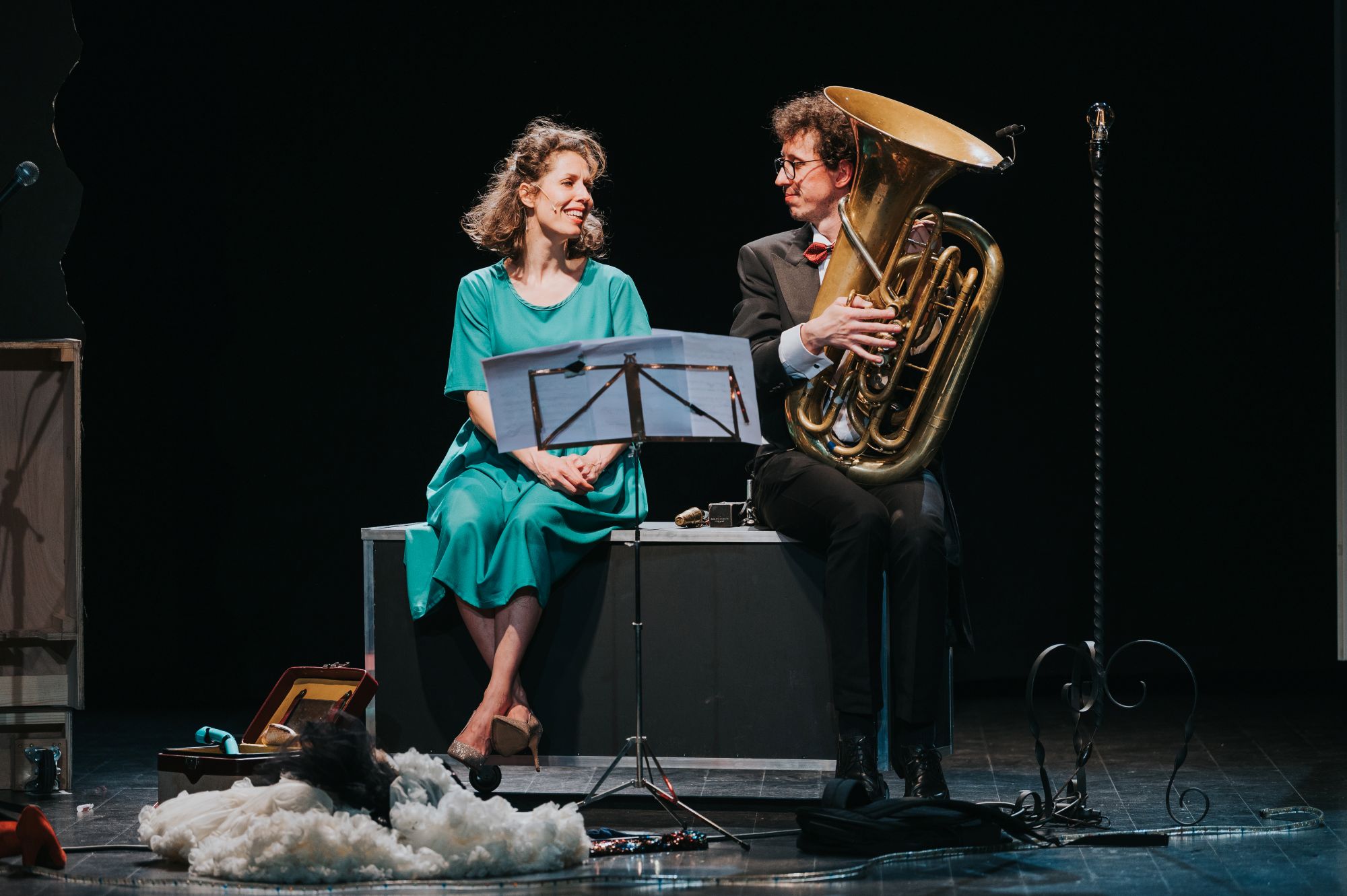 Conception, co-mise en scène, jeu et chant : Romie Estèves | Tuba, jeu : Maxime Morel | Composition : Timothée Quost | Co-mise en scène et dramaturgie : Pénélope Driant | Lumières et vidéo : Sébastien Sidaner | Scénographie : Manon Grandmontagne